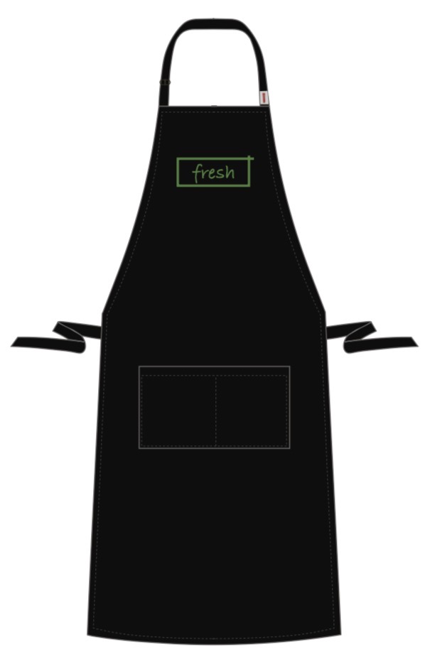 BLACK BIB APRON – GREEN FRESH LOGO ON CENTRE CHEST